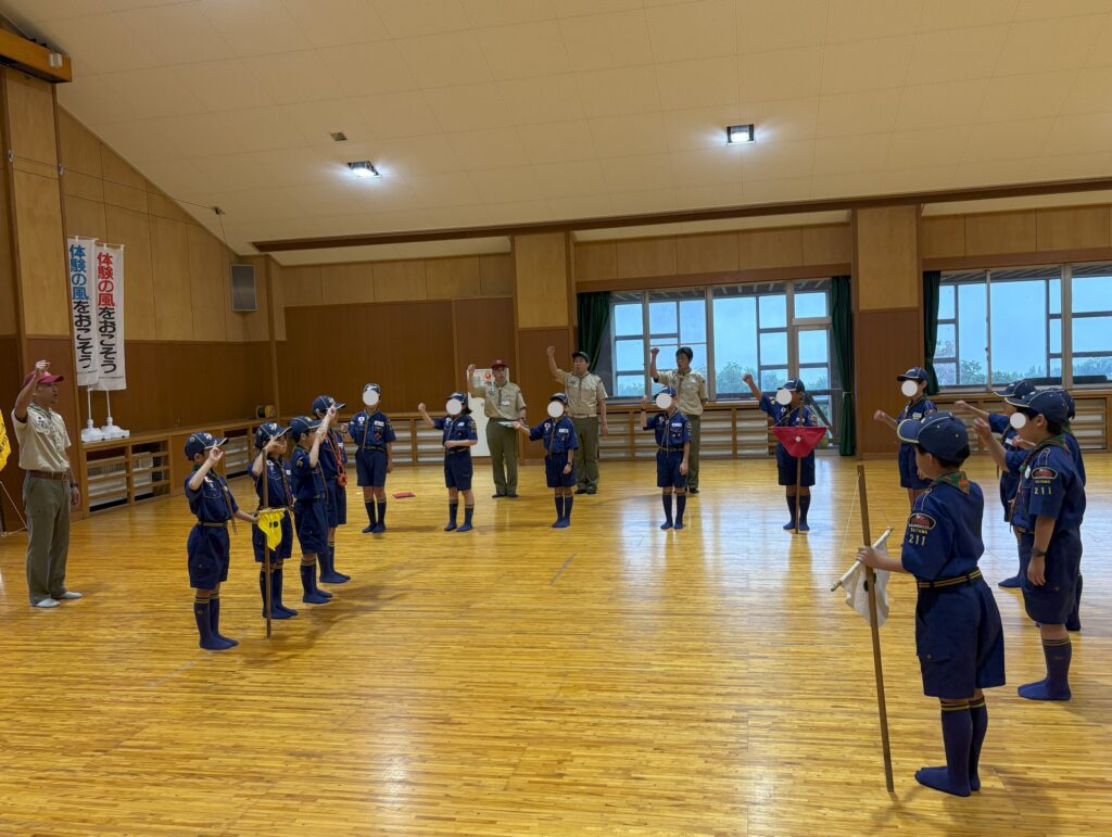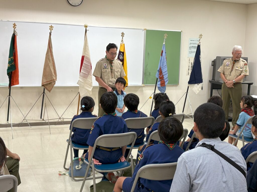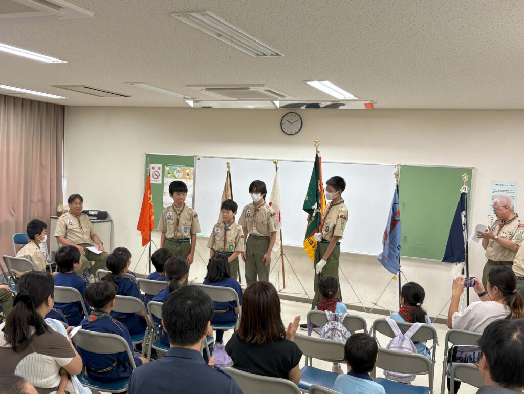 新しく入隊するビーバースカウトやカブスカウトの入隊式、および上位隊への上進式が文蔵公民館で行われました。