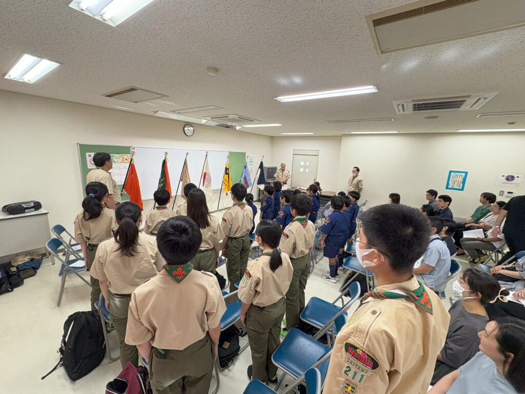 多くのスカウトが入隊上進しました。これから、来年夏のキャンプに向かって、新しい年間プログラムで各隊が活動していきます。みんな一年間楽しく活動してくださいね。