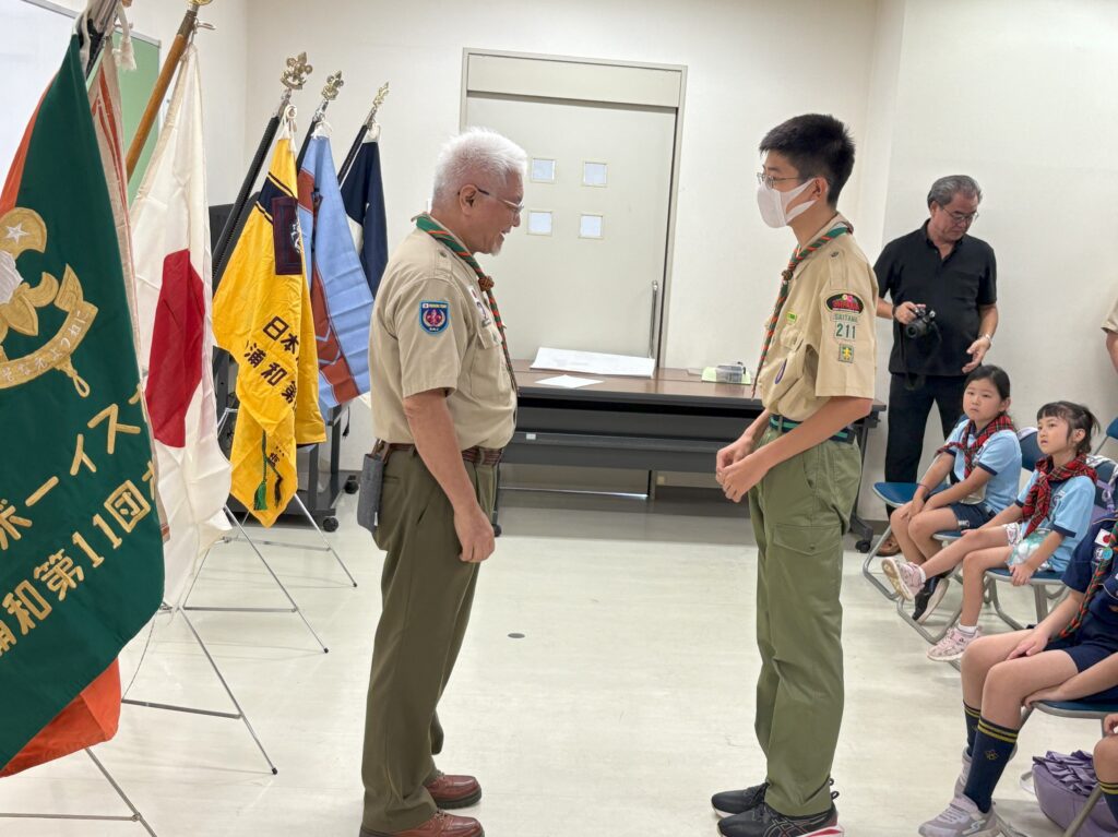 カブ隊にはビーバー隊から5名の上進があり、ベンチャー隊に1名が上進しました。